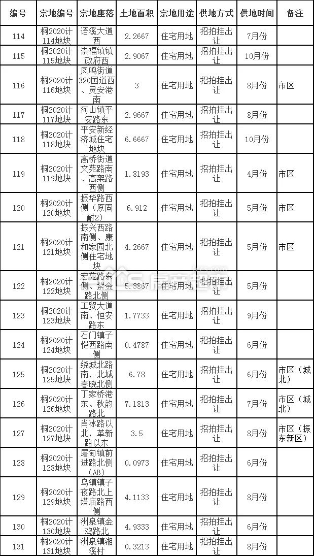 桐乡2020年供地计划出炉!18宗住宅地计划公开出让!含城北两宗 凤凰湖一宗