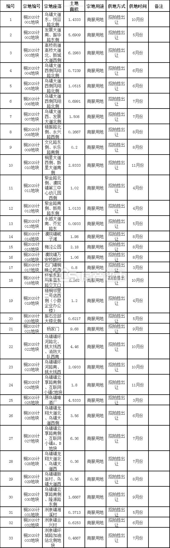此外,桐乡市本年度还有33宗商服用地计划公开出让,约73.97万方。